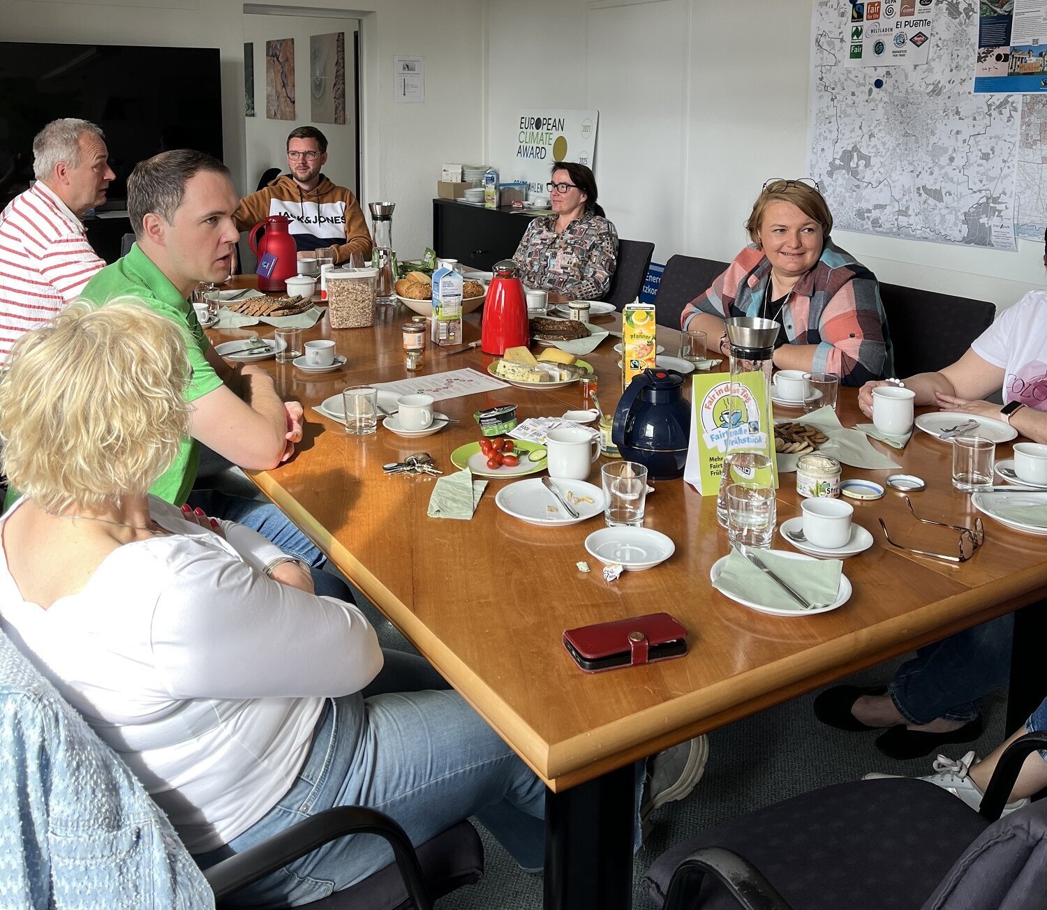 Im Rahmen der Kampagne „Faires Frühstück“ fand für die Mitarbeitenden des Baudezernats ein faires Frühstück statt. Dabei wurde für faire Beschaffung, insbesondere fairen Kaffee, geworben.