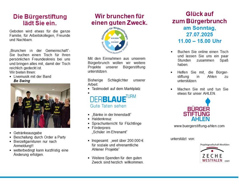 Unterstützt wird der Bürgerbrunch erneut von der Projektgesellschaft Westfalen.