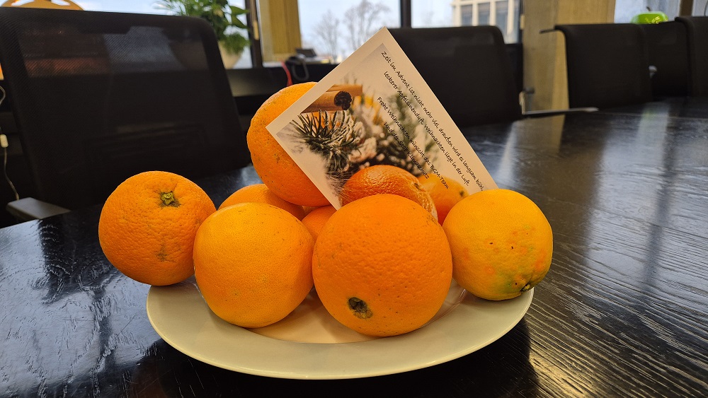 „Ob Schokoladen, Früchte oder kleine handwerklich hergestellte Geschenke: in den Weltläden und auch bei vielen Einzelhandelsketten gibt es Fairtrade-Produkte“, gibt Sauer einen Tipp für den Einkauf mit gutem Gefühl. Die Aktion ist Teil der städtischen Anstrengungen, den fairen Handel in Ahlen weiter auszubauen. Die Orangen stammen aus zertifizierten Kooperativen, in denen Produzentinnen und Produzenten unter menschenwürdigen Bedingungen arbeiten und faire Preise für ihre Ernte erhalten. Viele Beschäftigte nahmen die Aktion mit Freude an und nutzten die Gelegenheit, sich über Hintergründe des fairen Handels zu informieren. Die Stadtverwaltung engagiert sich für den Fairtrade-Gedanken und setzt auf fair gehandelte Produkte bei internen Veranstaltungen und offiziellen Anlässen.
