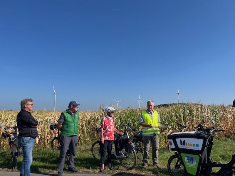 Weiter ging es zum Windpark in der Bauerschaft Halene. Dort berichtete Frank Buntrock über die Entwicklung der Windkraft seit den 1990er-Jahren. Durch Repowering – den Austausch älterer durch leistungsstärkere Anlagen – wächst die Stromproduktion stetig. Gemeinsam mit Photovoltaik-Freiflächenanlagen soll bis 2030 der lokale Strombedarf zu 130 Prozent gedeckt werden.