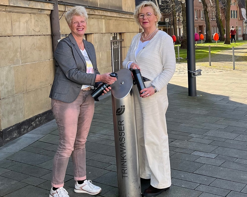 Eine nachfüllbare Trinkflasche sollte man auch immer mit sich führen. Neben dem Trinkwasser aus der heimischen Leitung gibt es in der Innenstadt viele Möglichkeiten, sich seine Trinkflasche kostenlos nachzufüllen. Auf dem Marktplatz Ahlen kann am Wasserspender rund um die Uhr Wasser getrunken werden. Weitere Trinkwasser Stationen können am Refill Sticker erkannt werden.