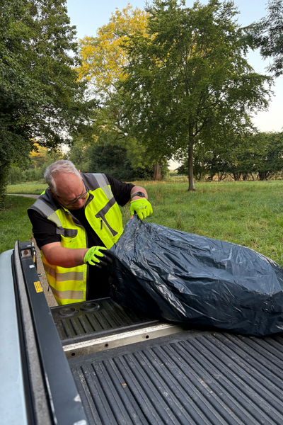 Kaum am ersten Mülleimer angekommen, steckt dort kopfüber ein schwarzer Müllsack. Hausmüll, eindeutig. „Das ist mittlerweile Standard“, sagt Gries, während er den Sack herauszieht und öffnet. Zwischen Verpackungen und Essensresten blitzt Papier auf – mit vollständiger Adresse. „Da bekommt jemand Post vom Ordnungsamt.“ Nur wenige hundert Meter weiter wiederholt sich die Szene – gleicher Absender.