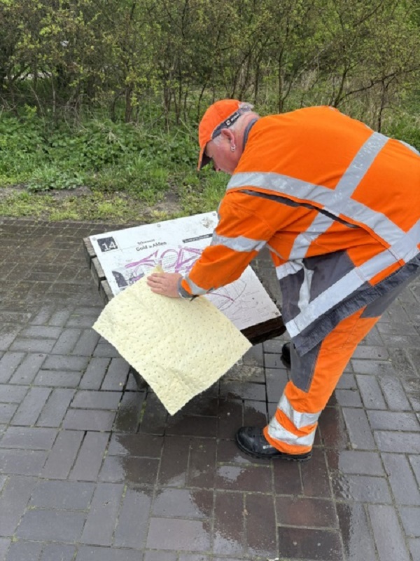 Parallel dazu kümmerte sich der Radwegebeauftragte der AUB, Mike Lehmann, um das Umfeld der Strecke. Wegweiser und Hinweisschilder wurden von Schmierereien befreit, Rastplätze gereinigt sowie Bänke und Tische in Augenschein genommen.