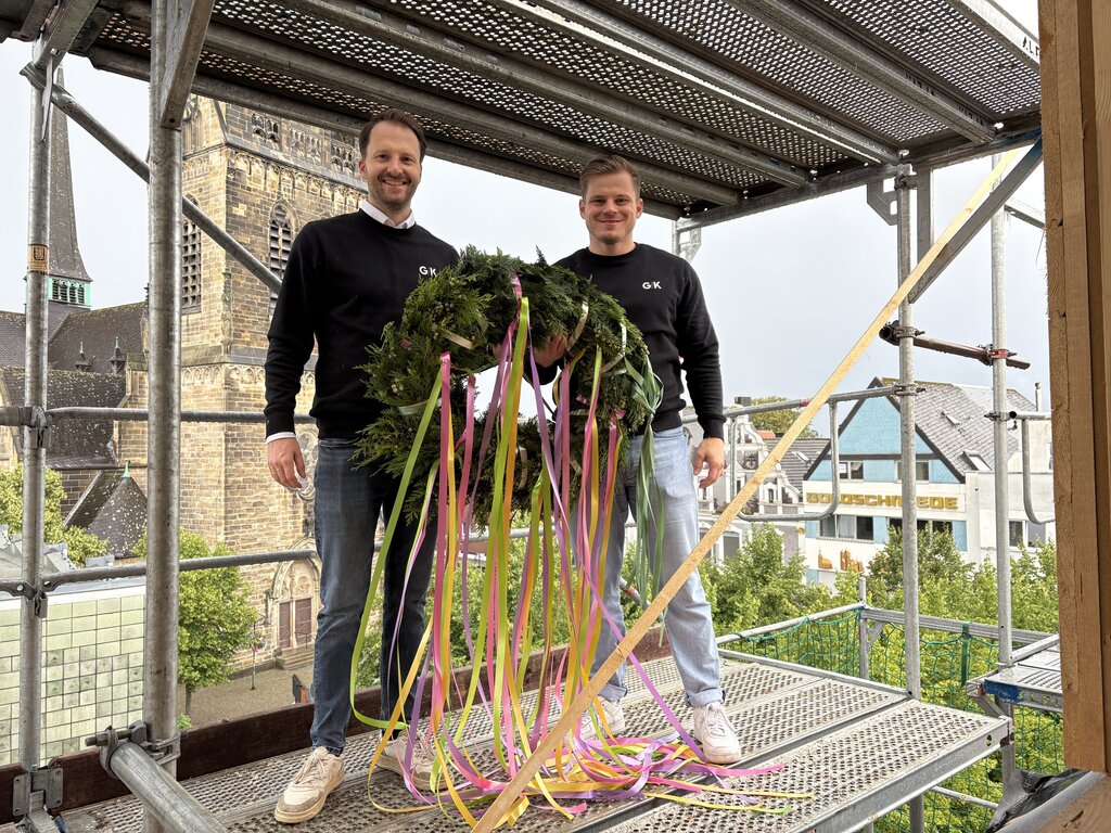 Mit dem Richtfest wurde traditionell die Fertigstellung des Dachstuhls gefeiert – der Rohbau steht, der Innenausbau läuft. Das Projekt liegt voll im Zeitplan, wie auch Bent Gosda in seiner Begrüßung betonte: „Mit dem heutigen Tag ist ein wichtiger Meilenstein erreicht. Unser Dank gilt insbesondere den Handwerksbetrieben, die mit hoher Fachkompetenz und Einsatzbereitschaft an der Umsetzung mitgewirkt haben. Und natürlich auch unseren Käuferinnen und Käufern – für das frühzeitige Vertrauen und die gute Zusammenarbeit.“