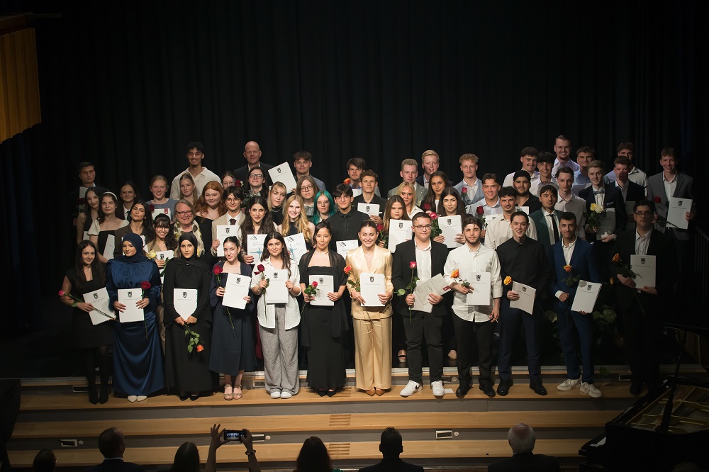 Schülersprecher Denis Mikucewicz gratulierte im Namen der an der Schule verbleibenden Schülerschaft, und die SV ehrte ihre scheidenden Mitglieder Berat Aydogdu, Dilan Aydogdu, Lilian Alarksosi, Izel Baladin, Alexandra Bänke, Dominik Bauer, Onur Cun, Amber Isikay, Julian Krätzig, Ece Özüdogru, Tobias Schreiber, Felix Schütte und Sude Sezer für ihr langjähriges Engagement.