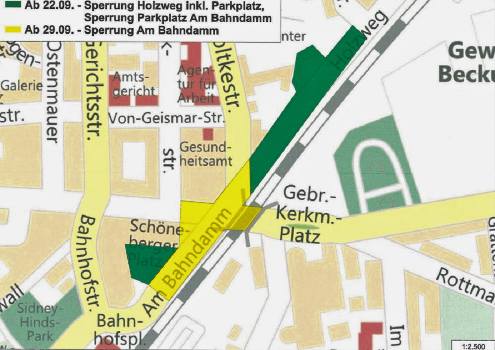 Ab 29. September ist zudem die Straße Am Bahndamm gesperrt.