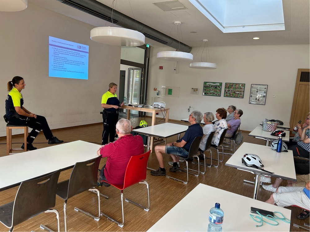 Um dem entgegenzuwirken, bot die Verkehrswacht im Kreis Warendorf in Kooperation mit der Kreispolizeibehörde Warendorf und der Stabsstelle Klimaschutz und Mobilität der Stadt Ahlen nun ein dreistündiges Pedelec-Training in Ahlen an. Mit Carola Krewerth und Katharina Sikora waren zwei erfahrene Mitarbeiterinnen der Verkehrsunfallprävention der Kreispolizeibehörde Warendorf vor Ort. Begleitet wurde die Veranstaltung zudem durch Stefanie Prosek und Frank Buntrock von der Stabsstelle.