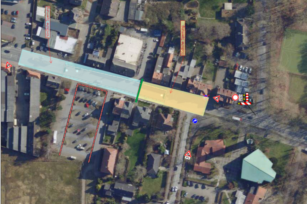 Zuerst wird der Teil von der Zufahrt zum Lidl Parkplatz bis zur Zufahrt des „Jysk“ Geschäftes gesperrt. Das ist für den Zeitraum von Mittwoch, 26. Juni, bis Freitag, den 19.Juli, geplant.