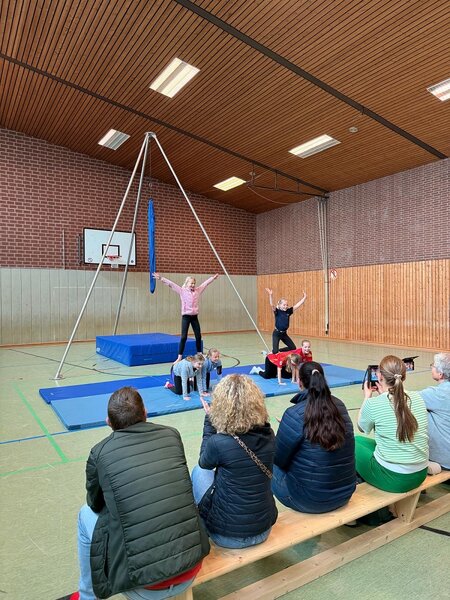 Am letzten Projekttag wurde zudem spontan eine kurze Zirkusdarbietung auf die Beine gestellt, zu der die Eltern der teilnehmenden Kinder und Jugendlichen eingeladen wurden. Die jungen Artisten nutzten die Gelegenheit, um ihr neu erlerntes Können zu präsentieren und verschiedene Tricks und Übungen vor Publikum zu zeigen. Das Projekt wurde von der Koordinierungsstelle Kulturelle Bildung der Stadt Ahlen organisiert und in Zusammenarbeit mit dem Bürgerzentrum Schuhfabrik Ahlen sowie der Jugendecke Nord (JuNo) durchgeführt. Das Angebot fand im Rahmen des städtischen Kreativprogramms „Kulturrucksack NRW“ statt, das vom Ministerium für Kunst und Wissenschaft NRW gefördert wird.