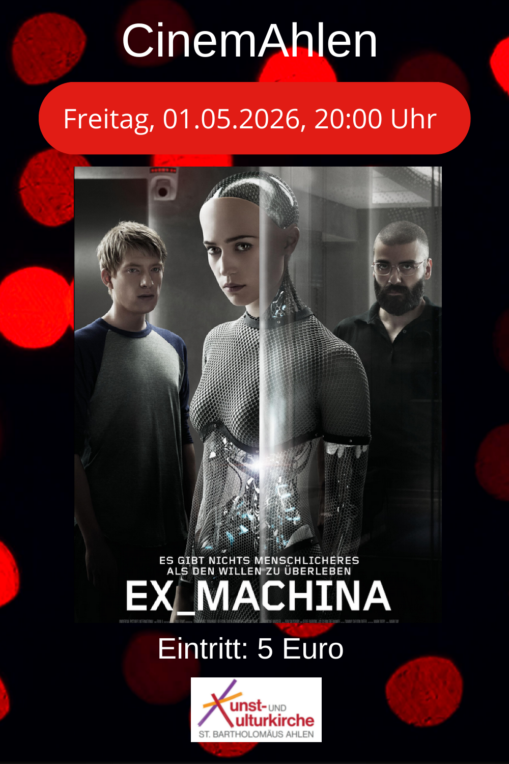 Unter dem Motto „Haut - Was zeichnet uns Menschen gegenüber einer KI aus" zeigen wir den Film Ex Machina im CinemAhlen.