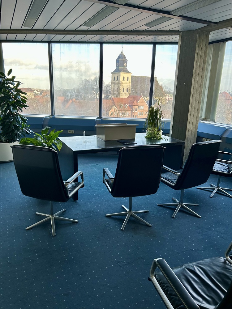 Im Trauzimmer des Rathauses stehen Ihnen für Ihre Gäste insgesamt 16 Sitzplätze zur Verfügung (eventuelle Trauzeugen sind hierbei mitberücksichtigt).