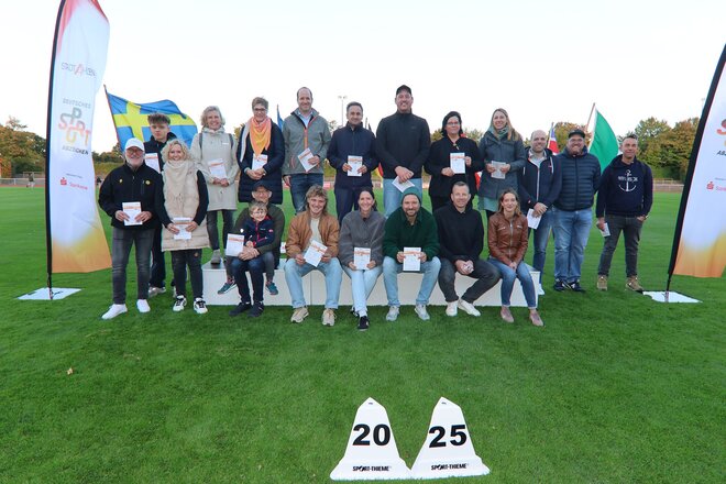 In diesem Jahr legten 26 Frauen und Männer erstmals das Sportabzeichen ab. Drei Sportlerinnen und ein Sportler schafften in 2025 ihr Jubiläum. Ihr goldenes Abzeichen für 50 Teilnahmen feierte Ingrid Kerl-Karos, ihr silbernes Sportabzeichen für 25 Teilnahmen erhielt Anne Thiemann und auf je 20 Teilnahmen kamen nun Hildegard Wichmann und Erich Retzke.